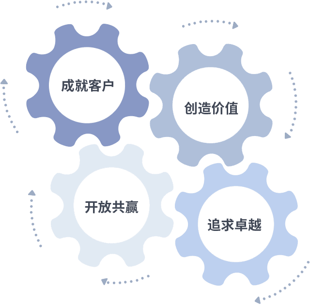 成就客户是一切决策的出发点,,,,创造价值是衡量所有工作的标准,,,追求卓越是918搏天堂做事做人的态度,,,,开放共赢是918搏天堂的格局也是最终的结果。。。。价值观的齿轮环环相扣,,推动着组织里的每个人不断向前。。